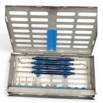 İmplant yerleştirilmeden önce bölge hazırlığından yükseltilmiş sinüse greft yerleştirmeye kadar kristal sinüs yükseltilmesi için gereken tüm araçları içerir.