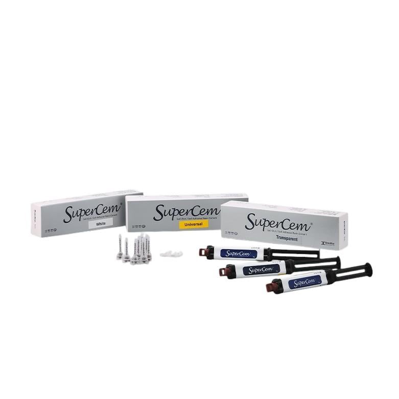 SuperCem, self-etch ve self-adhesive teknolojisi sayesinde ayrı bir adeziv uygulama adımına ihtiyaç duymadan, diş dokusu ve restorasyon materyali arasında güçlü bir mikro-mekanik ve kimyasal bağ oluşturur. Bu özellik, işlem süresini kısaltır ve klinik prosedürü basitleştirir. Çift kürlenmiş (dual-cure) yapısı, ışıkla kürlenmenin yetersiz kaldığı derin kavite veya opak restorasyonlarda dahi tam polimerizasyon garantiler.