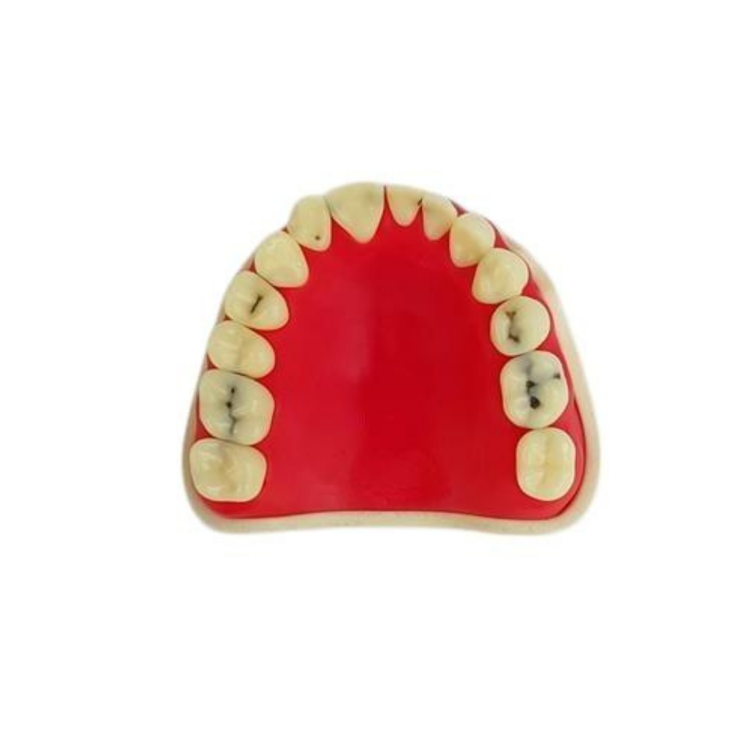 Set İçeriği: 14 adet çürüklü diş (7 adet 1. bölge, 7 adet 4. bölge), tek çene modeli ve sabitleme somunu.