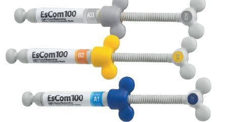 EsCom 100, diş hekimliğinde en sık karşılaşılan restoratif ihtiyaçları karşılamak üzere formüle edilmiştir. Kullanım alanları arasında;